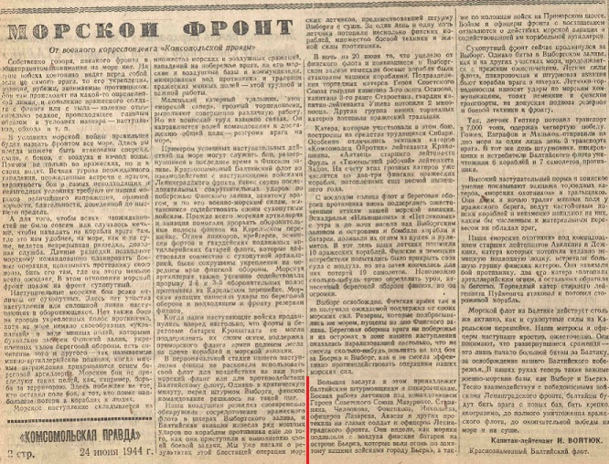 - “Краснофлотская правда”, №147 21.6.1944