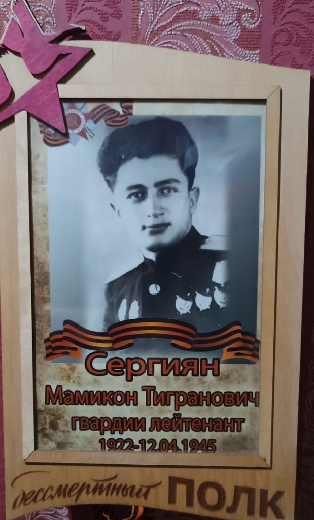 Сергиян Мамикон Тигранович, 1922 г. рождения, армянин, учащийся, кандидат в члены ВКП(б) с 1942 г., в РККА с 1940 г.