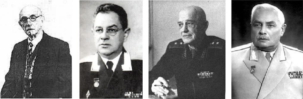 Слева направо: Николай Николаевич Петров (14.12.1876 — 2.3.1964), Алексей Николаевич Максименков (29.3.1906 — 8.8.1968), Пётр Андреевич Куприянов (8.2.1893 — 13.3.1963), Семён Семёнович Гирголав (14.2.1881 — 25.1.1957)